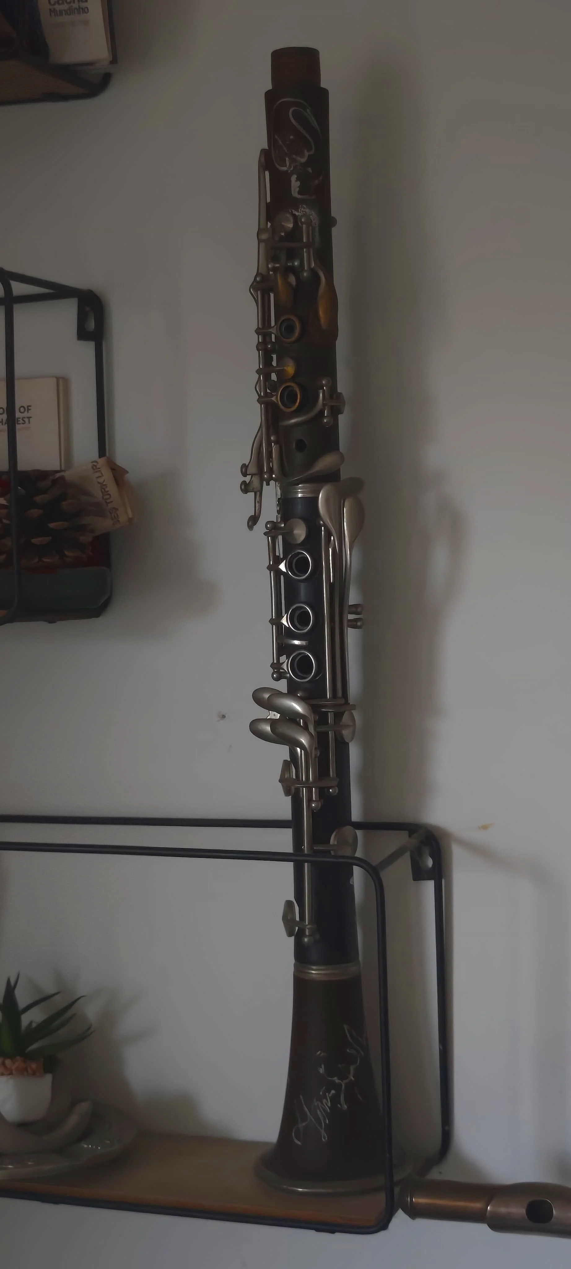 The clarinet on display in our new home in Rotterdam, no longer playable after the refugee boat drowned in the waters between Turkey and Greece.